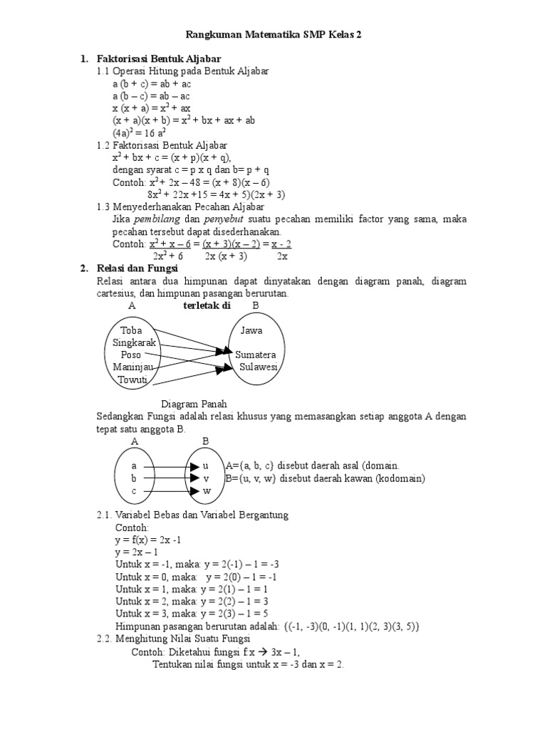 Rangkuman Matematika Smp Kelas 2